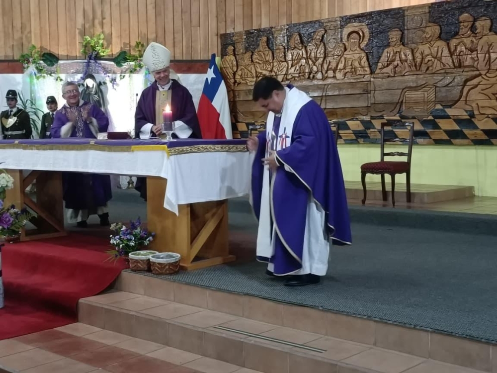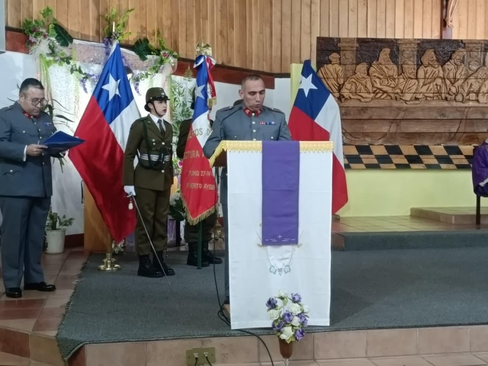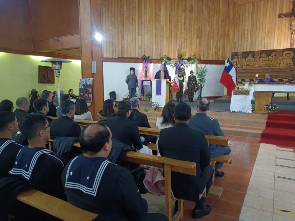 Con la participación de las diferentes delegaciones de las fuerzas Armadas de Orde y seguridad pública, el Obispo Castrense de Chile Monseñor Pedro Ossandón Buljevic, Junto al párroco y capellán ad honorem P. José Vera, Vicario General del Vicariato Apostólico de Aysén y el capellán de Ejército, P. Jorge Mardones, celebraron la Santa Misa.
