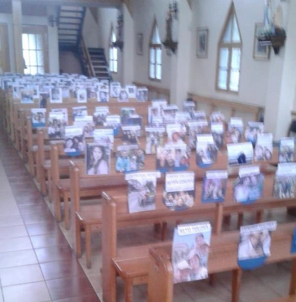 El capellán a cargo, Pbro. Rosiel Ruiz nos señaló: “Los fieles enviaron sus fotos y nosotros las colocamos en los asientos de las bancas del templo, pero con el compromiso que ellos participen desde sus hogares, siguiendo la Eucaristía Dominical que se transmite online por Facebook.